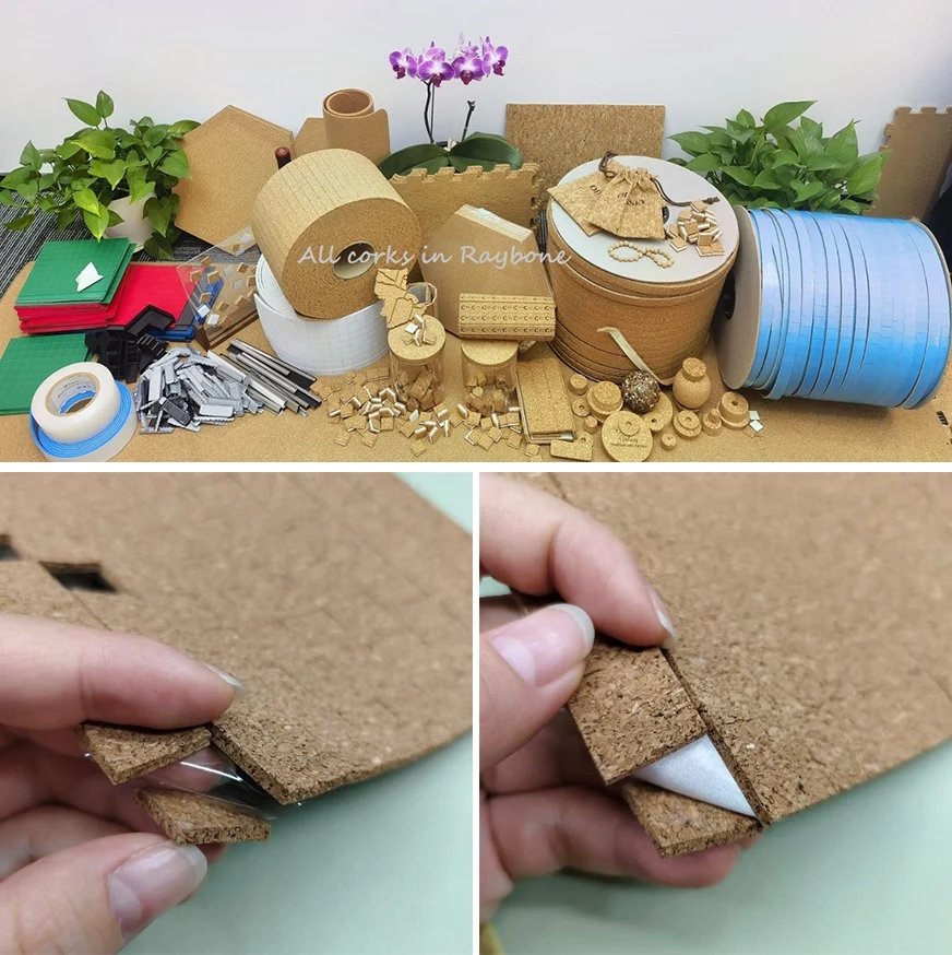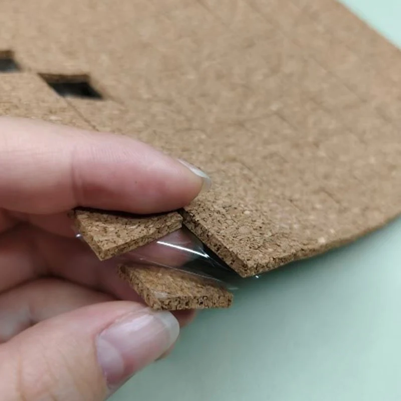 Tampoane de transport din plută de 1/8" x 3/4" x 3/4" cu suport Cling, compuse în principal din plută și lipici detașabil și hârtie sau PET transparent ca căptușeală pe spate, ambalate în cutie sub formă de foi sau rulouri, după cum se arată mai jos: